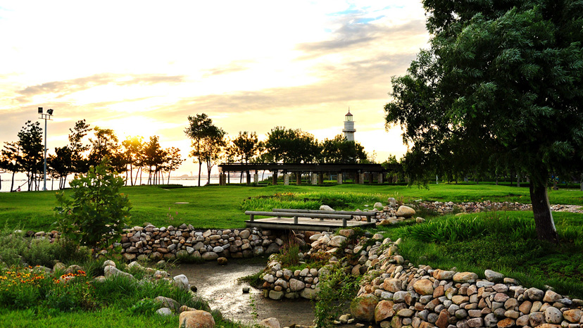 威海市悦海公园位于威海公园南侧、海上公园北侧以“休闲、健身、家园”为主题。悦海公园绿化工程于2007年5月工程造价4899万元,总建设面积12.3万平米,主要包括绿化和土建工程,其中绿化工程7.5万平米,土建工程4.8万平米。工程累计回填土方21.3万立方,硬化铺装4.65万平米,安装喷灌管线12450米,雨水管线2400米。