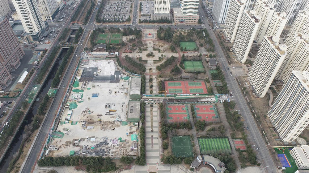威海经区世纪体育公园项目位于韩乐坊商圈北侧,南邻华夏路,东邻海滨南路,总规划面积约2.5万平方米